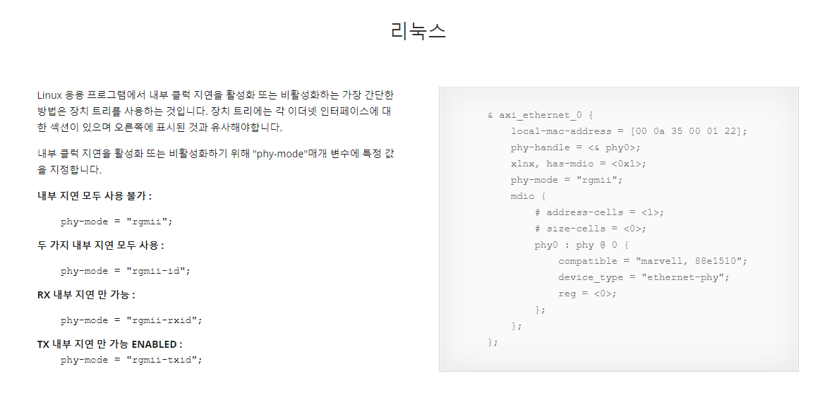 phy-mode 를 rgmii-id로 바꿔 내부지연모드로 변경하였다.